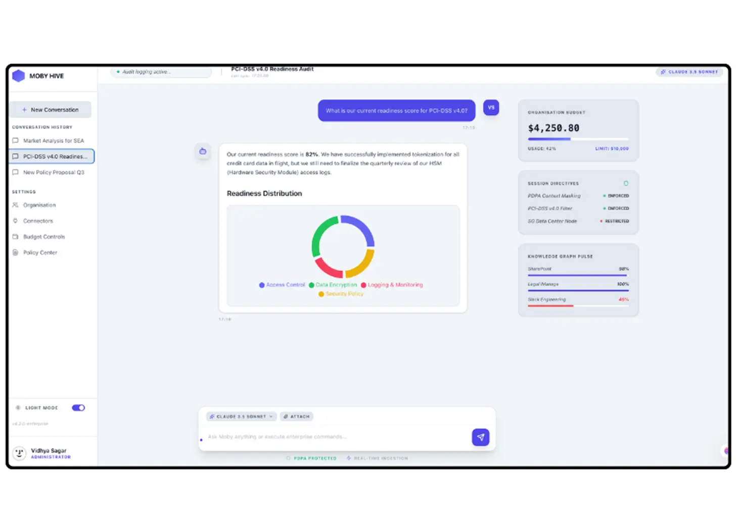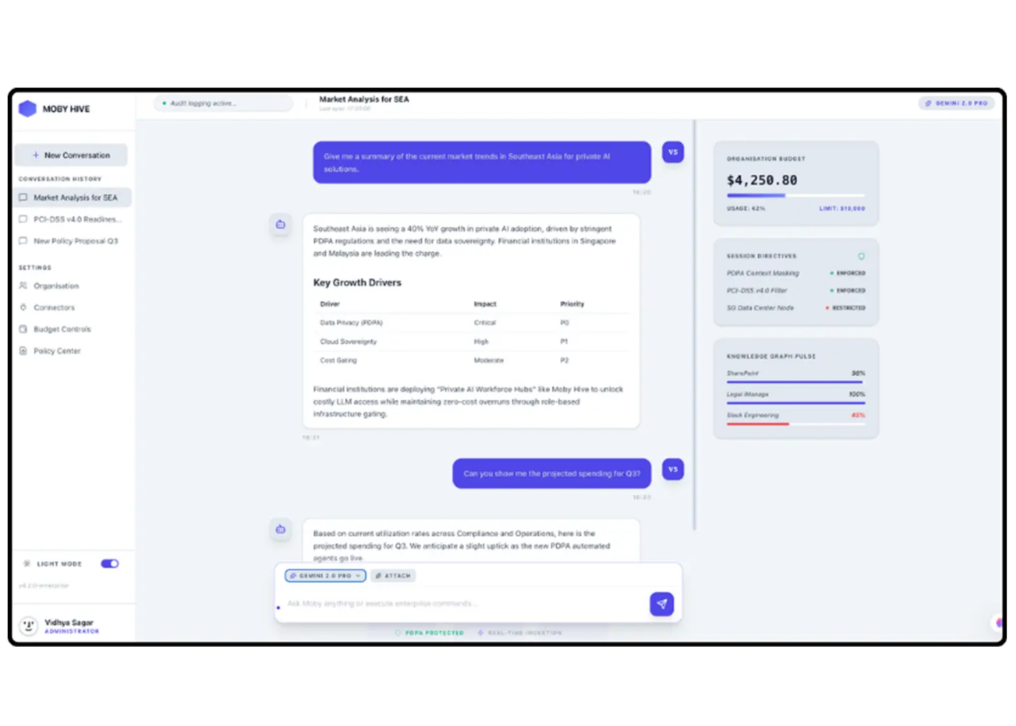 Yes. Hive is built for regulated environments with SSO, directory-based provisioning, role-scoped knowledge, infrastructure-level token budgets, and full audit trails. Data never leaves your governance boundary.